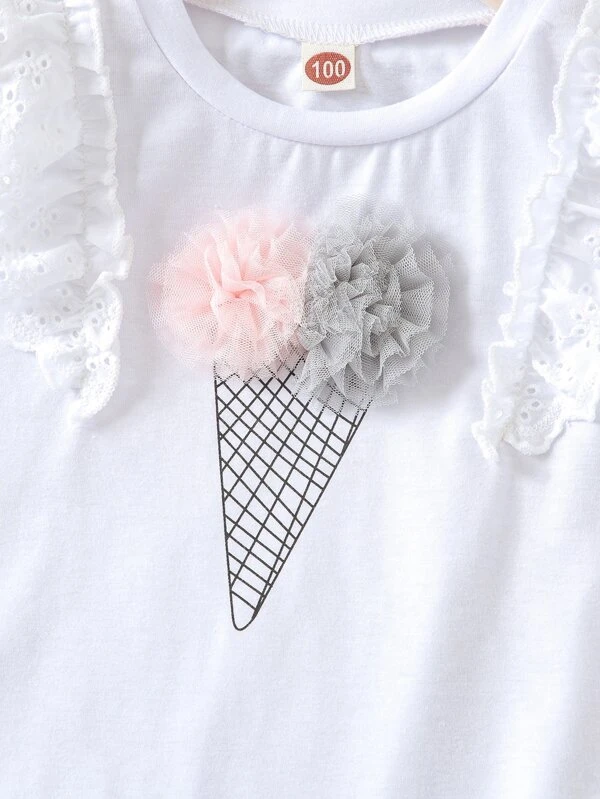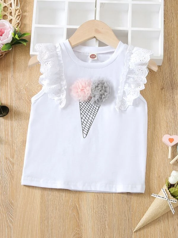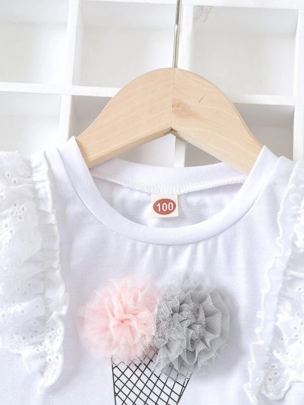 Details:Ruffle, Appliques, Eyelet Embroidery